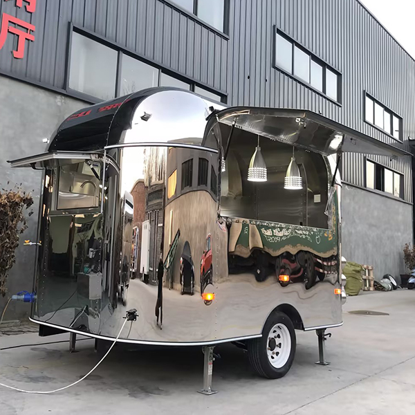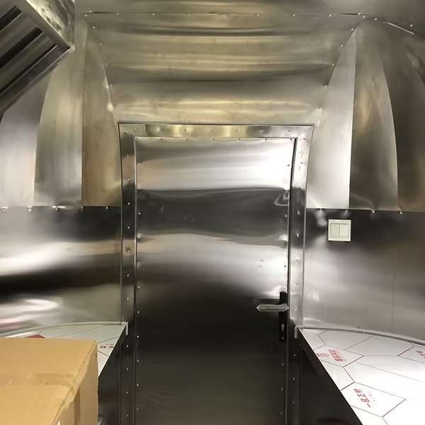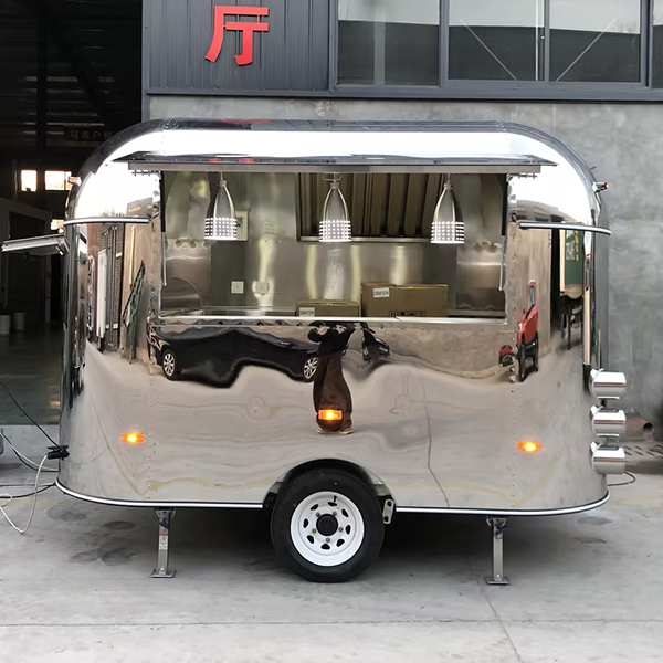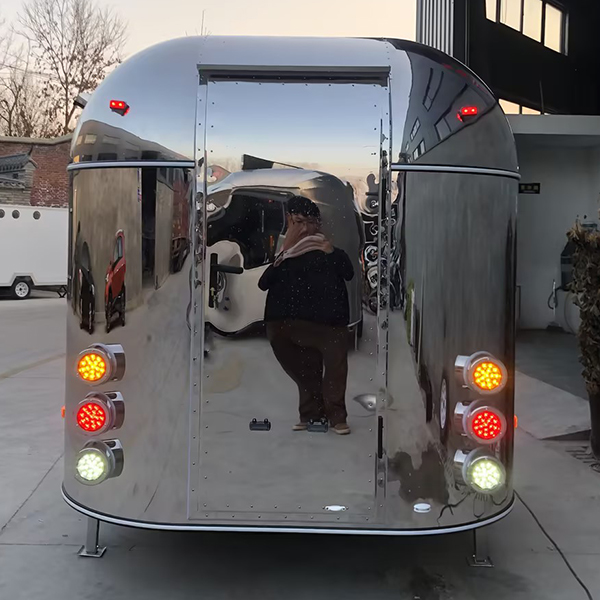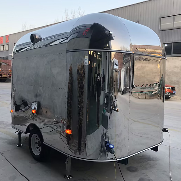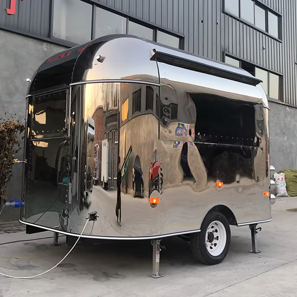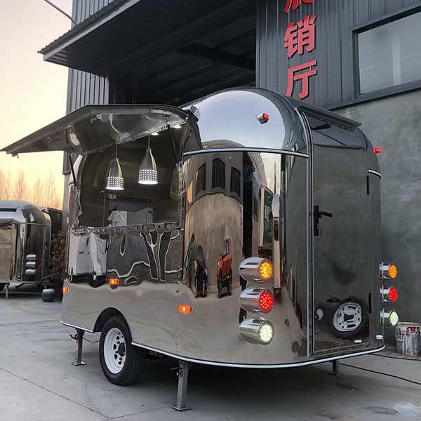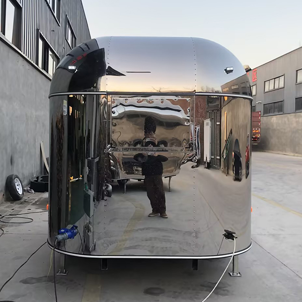 The 10ft mirror airstream food trailer is a stylish and functional mobile catering solution designed to make a striking impression at any event. Its highly reflective mirror finish not only adds a touch of modern elegance but also ensures high visibility, making it an eye-catching centerpiece for catering services. The trailer’s compact size allows for easy maneuverability and placement, while still providing ample space for culinary operations.