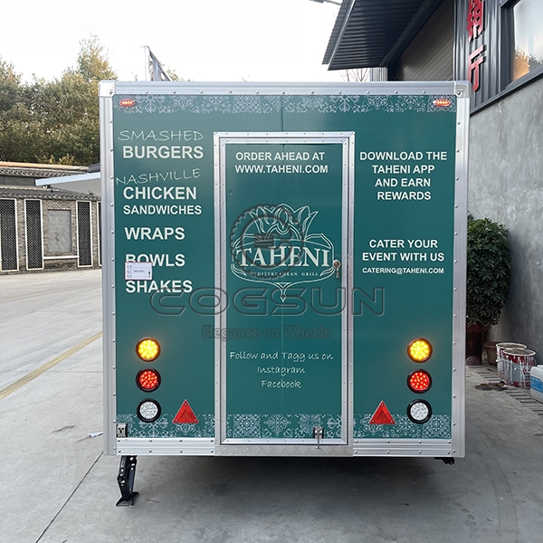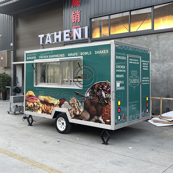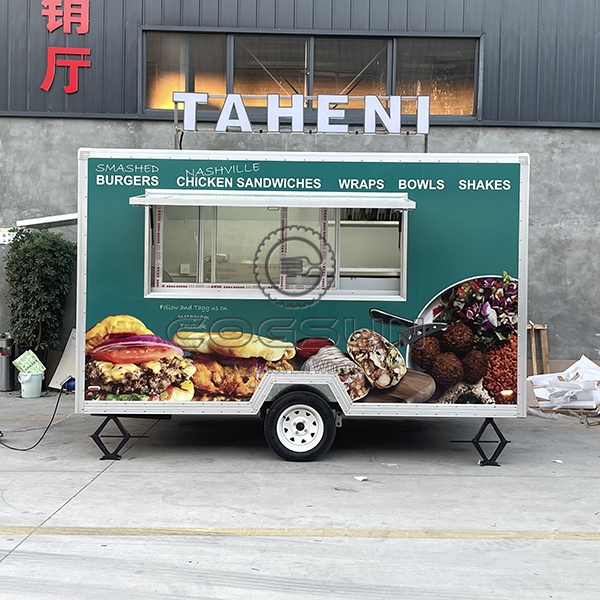 The 10ft sticker square food trailer is a compact, efficient mobile unit for fast food sales, featuring vibrant exterior stickers that showcase a variety of menu items to attract customers. Its square design optimizes interior space while remaining easy to tow and maneuver in busy areas. Ideal for entrepreneurs seeking a visually appealing and practical mobile food solution.