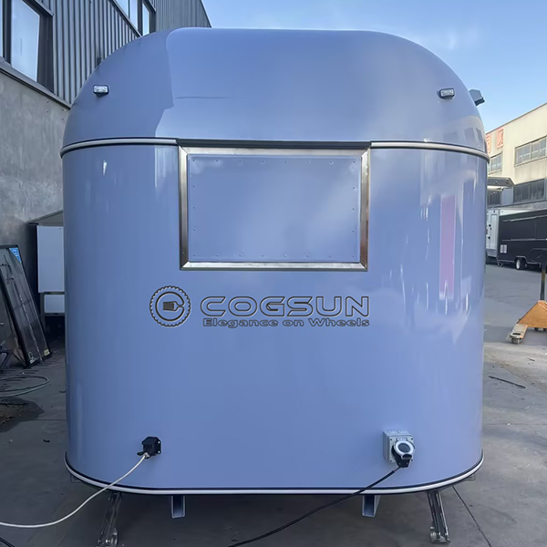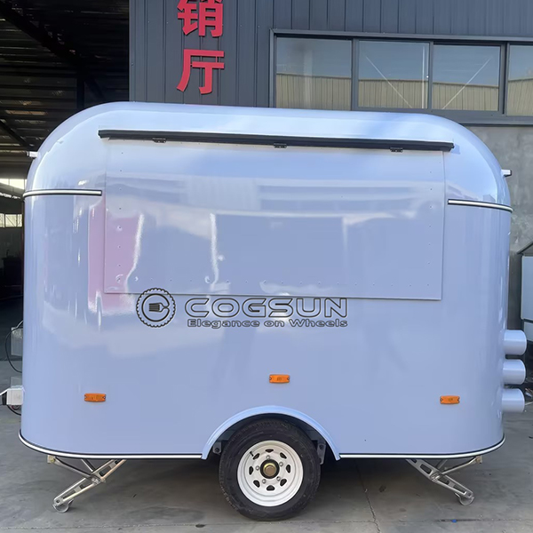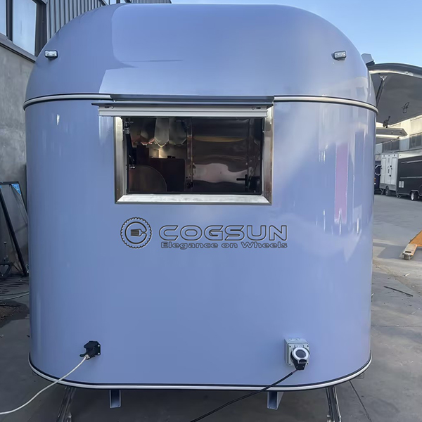 The 10ft white mirror airstream food trailer seamlessly blends classic Airstream – inspired design with modern functionality. Its smooth, rounded exterior with a white mirror finish exudes timeless elegance and sophistication. The large front service window offers customers a view inside while easing order – taking, and its compact 10 – foot size ensures high maneuverability in busy areas.