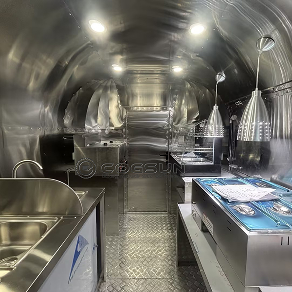 The combination of the classic Airstream shape and the white mirror finish makes this trailer a head – turner. It stands out in any location, whether it’s a bustling city street, a food festival, or a beachside park, attracting customers and creating a strong brand presence.