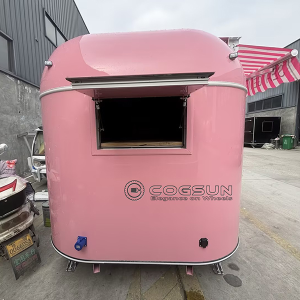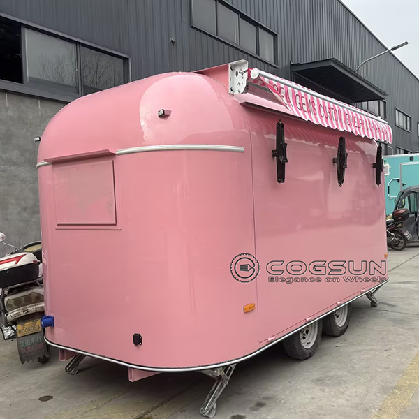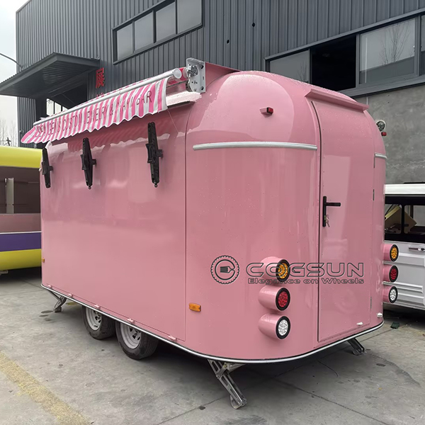 - Eye-Catching Awning: The pink and white striped awning provides shade and adds to the trailer’s charm, creating an inviting space for customers to browse your offerings.