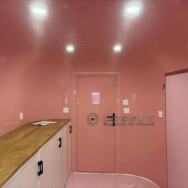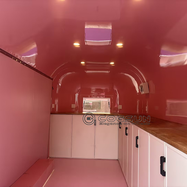 - Vibrant Pink Exterior: The trailer’s striking pink color is sure to draw crowds and make your mobile boutique the talk of the town.