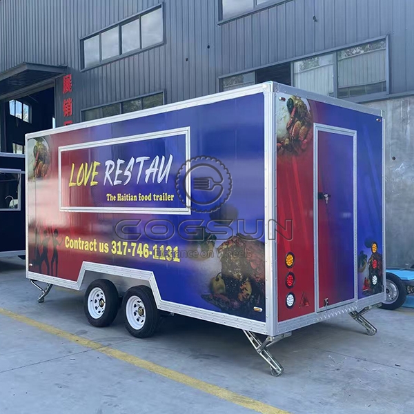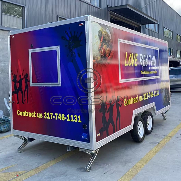 The 13ft sticker single window square food trailer is a versatile and compact mobile food unit designed for entrepreneurs looking to enter the food service industry with a striking visual presence.