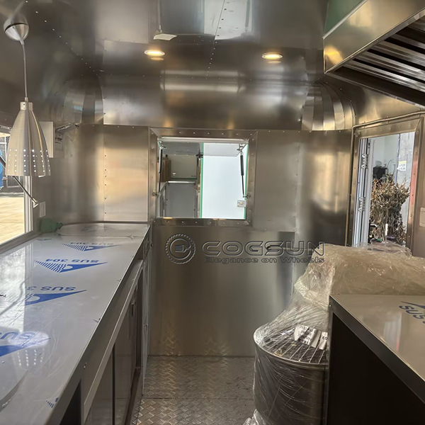 The 13ft sheet metal airstream food trailer for street is a top-tier mobile kitchen designed to help food entrepreneurs make a mark in the competitive street food industry. This trailer seamlessly blends the iconic, nostalgic design of classic Airstream trailers with modern, robust construction and cutting-edge amenities.