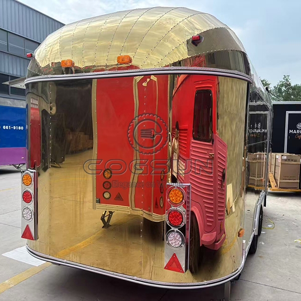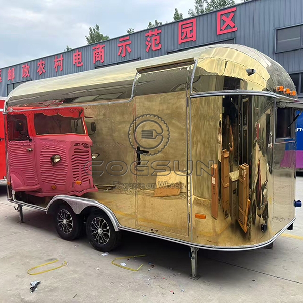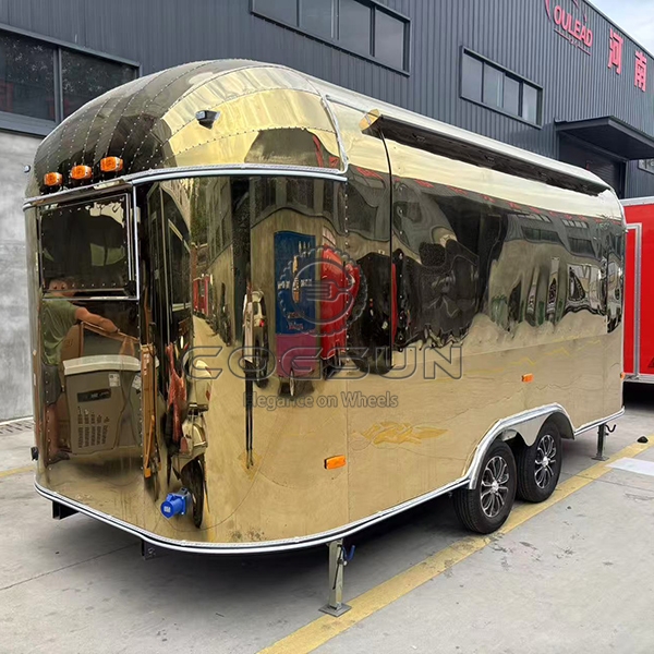 - Luxurious Gold Finish: The high-gloss gold exterior gives the trailer a premium and sophisticated appearance, setting it apart from traditional food trucks.