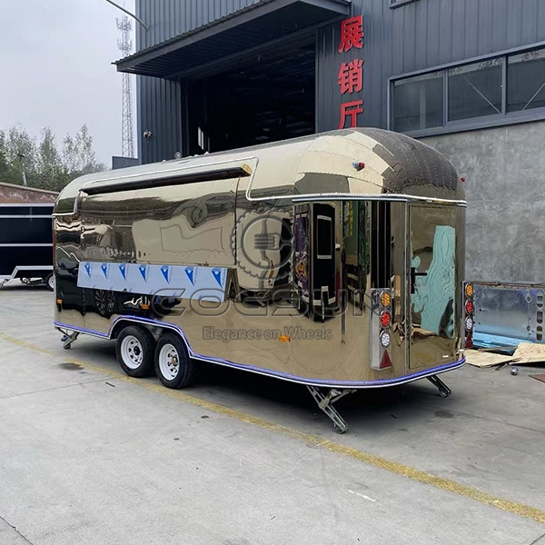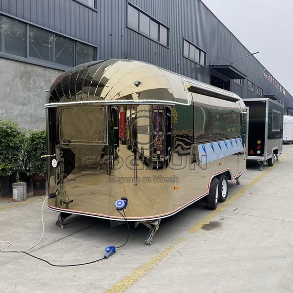- Iconic Airstream Design: The trailer’s vintage-inspired, rounded silhouette is instantly recognizable and loved by food truck enthusiasts worldwide. The gold mirror finish enhances its visual appeal, making it a focal point at any event.