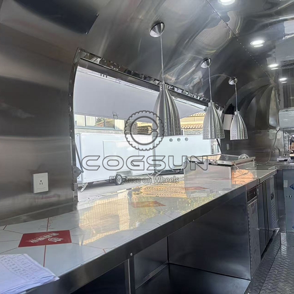 The 16.5ft mirror airstream food trailer is a stunning and highly functional mobile food unit that combines a sleek, eye-catching exterior with a well-designed interior, making it an excellent choice for entrepreneurs looking to make a mark in the food service industry.